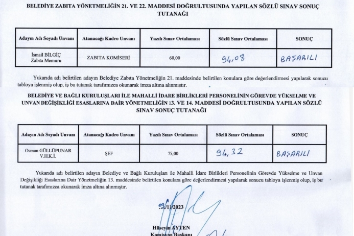 Memur Personel Görevde Yükselme Sınav Sonucu